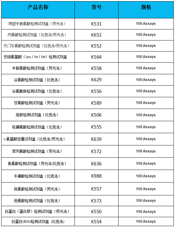 更多氨基酸檢測(cè)試劑盒,不容錯(cuò)過(guò)!