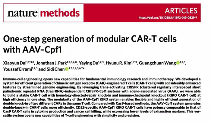 作者利用腺相關病毒( AAV )與CRISPR -Cpf1系統(tǒng),開發(fā)了一種高效的制備的Car-T的方法,而且具有顯著增強的特征。該技術使得Car-T制備的高效性大大提高。