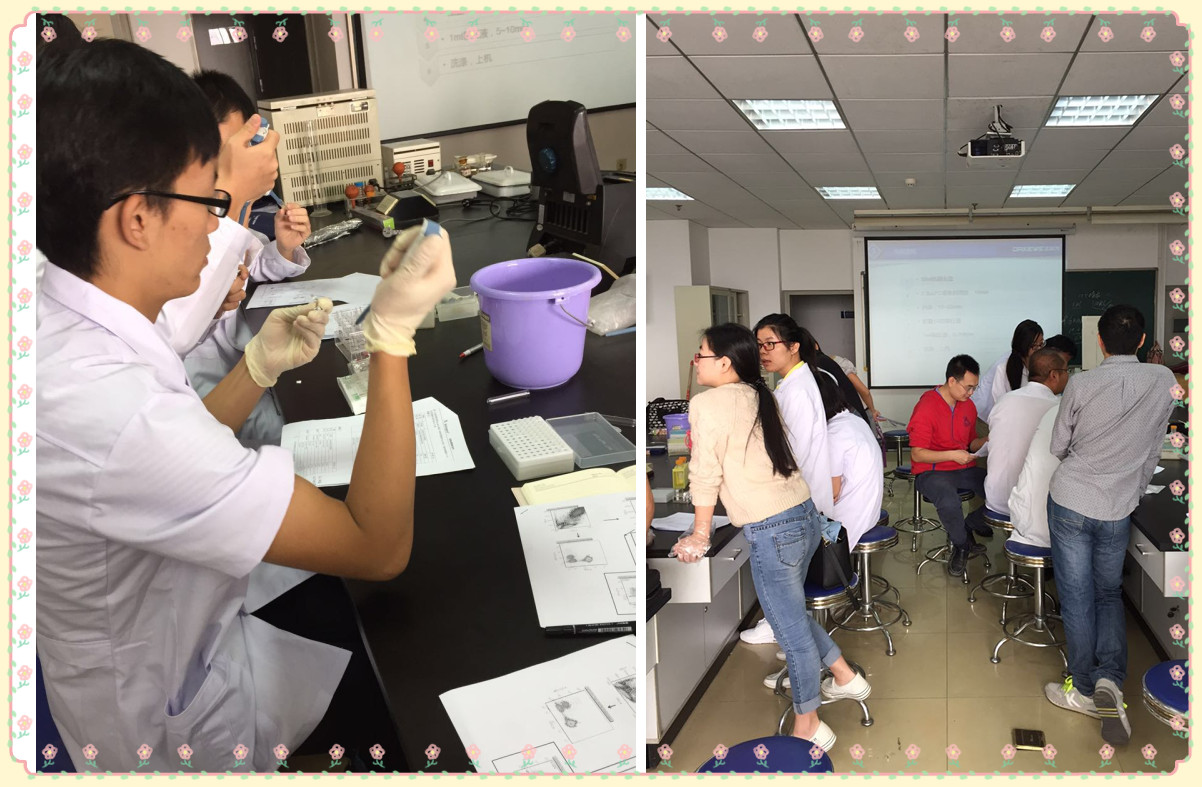 接著是采集血液樣本,隨后每個(gè)小組開(kāi)始實(shí)驗(yàn),指導(dǎo)人員對(duì)關(guān)鍵步驟進(jìn)行講解及演示,并且在實(shí)驗(yàn)過(guò)程中,學(xué)員就具體實(shí)驗(yàn)操作及自己課題中遇到的問(wèn)題與達(dá)科為技術(shù)人員進(jìn)行了深入的討論,有學(xué)員表示受到一定啟示。
