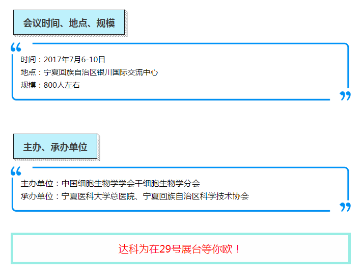 由中國細(xì)胞生物學(xué)學(xué)會(huì)干細(xì)胞生物學(xué)分會(huì)主辦,寧夏醫(yī)科大學(xué)總醫(yī)院和寧夏科學(xué)技術(shù)協(xié)會(huì)共同承辦的“中國干細(xì)胞第七屆年會(huì)”,將于2017年7月6日至10日在寧夏回族自治區(qū)銀川國際交流中心召開。本屆年會(huì)主題為:干細(xì)胞研究與轉(zhuǎn)化——破冰之旅。達(dá)科為也在本次會(huì)議中積極響應(yīng),達(dá)科為&PeproTech攜手合作,恭祝中國干細(xì)胞第七屆年會(huì)取得成功!