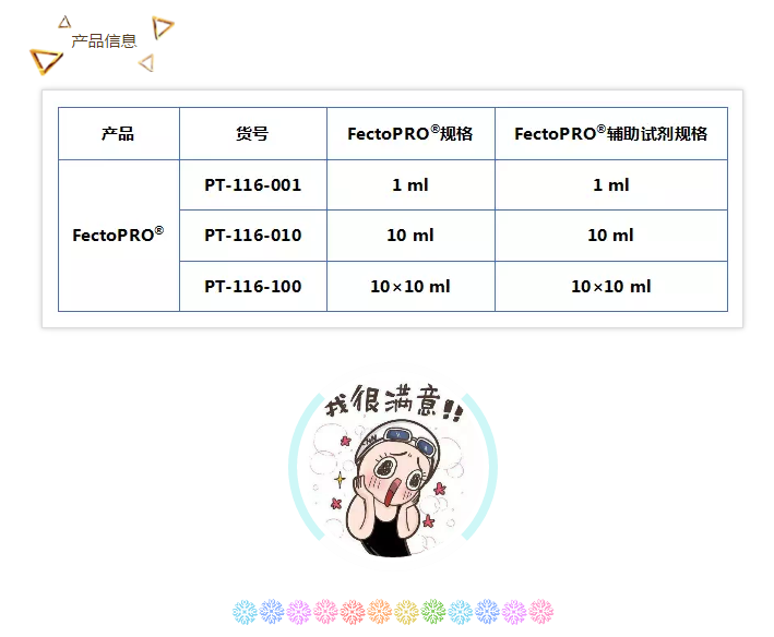 FectoPRO?采用嚴格管控的生產(chǎn)流程進行生產(chǎn)和配置,確保各實驗結(jié)果的高度可重復(fù)性。此外,為了符合現(xiàn)行的監(jiān)管準則,F(xiàn)ectoPRO?還采用了先進的質(zhì)控流程,包括確保批次間的蛋白質(zhì)生產(chǎn)率有絕佳一致性的質(zhì)量指標(biāo)。