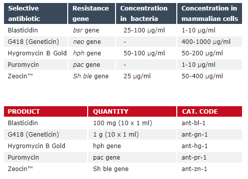 InvivoGen的篩選抗生素可與其他篩選抗生素或與細胞培養(yǎng)過程中預防支原體,細菌,真菌污染的抗微生物抗生素聯(lián)合使用。有不同的規(guī)格可供選擇。