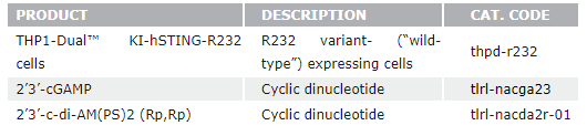 InvivoGen提供一系列STING篩選服務的選擇,用于鑒定激活或抑制一些STING突變體的分子。欲知更多信息請聯(lián)系我們。