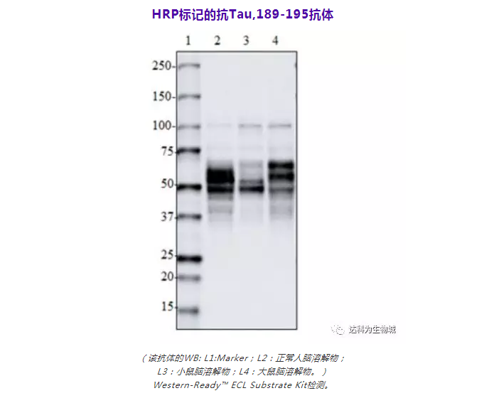 針對Tau和其他靶標(biāo),我們還準(zhǔn)備了幾種HRP標(biāo)記抗體,通過縮短整個(gè)流程使WB更簡易。