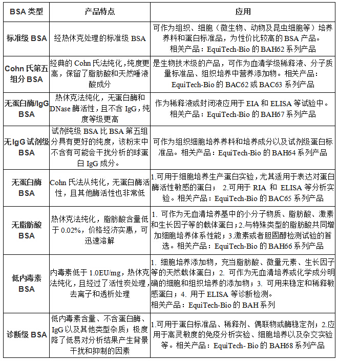牛血清白蛋白Albumin from bovine serum,BSA,又稱為組分V或Cohn V,名稱起源于BSA的分餾法——Cohn 冷乙醇法, Cohn 冷乙醇法是由哈佛大學(xué)Edwin Cohn教授于1946年發(fā)明的。當(dāng)時基于戰(zhàn)爭創(chuàng)傷治療對注射級別蛋白的大規(guī)模需求,Cohn教授在較低的溫度下改變血漿的乙醇濃度和pH值,使其所含蛋白在不同乙醇濃度下析出,在第五個析出的組分中主要成分為BSA,所以BSA又稱組分V或Cohn V。Cohn法仍然是目前非常普遍的BSA分餾法。 美國大的生物原材料供應(yīng)商Equitech-Bio提供經(jīng)典冷乙醇法和先進的熱休克法純化的高質(zhì)量、分類齊全的BSA,助力您的實驗!