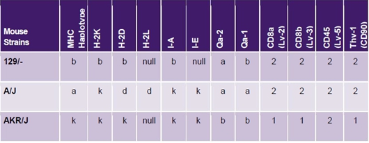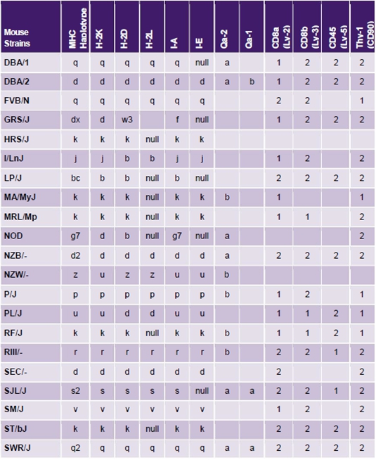 實(shí)驗(yàn)室常用小鼠單倍型及同種異型抗原