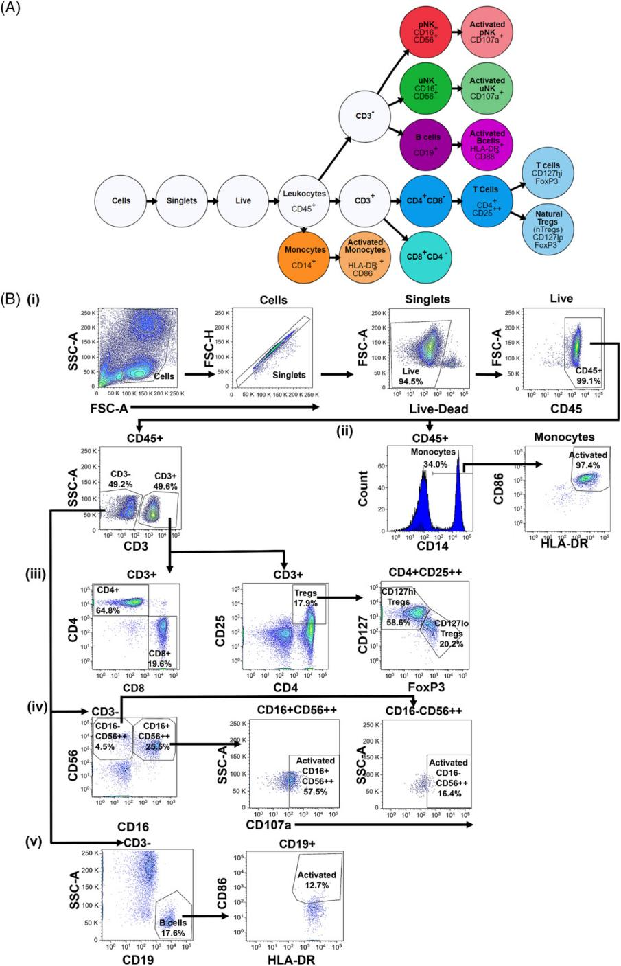 (v)B細胞:CD3-CD19+和活化的B細胞:CD3-CD19+CD86+HLA-DR+。